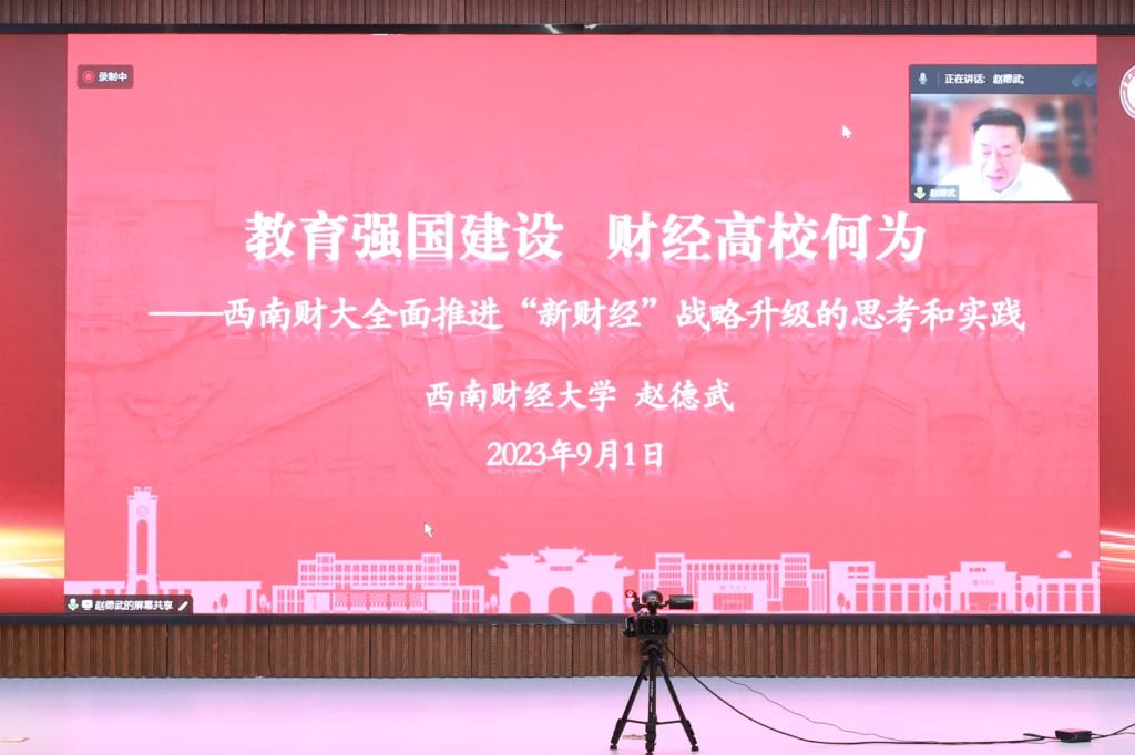 9月1日上午,西南财经大学党委书记赵德武在线做了《教育强国建设 财经高校何为——西南财大全面推进“新财经”战略升级的思考和实践》的专题辅导报告。赵德武首先对taptap点点办学发展所取得的成绩给予充分肯定,随后结合西南财大的发展实践,深刻阐述了高等财经教育的时代背景及其特征、“新财经”:从战略思考到战略实践、全面推进“新财经”战略升级等三方面内容。他指出,高等财经教育要主动适应科技革命和产业变革带来的深远影响,自觉成为新发展格局中的内生变量,坚持问题导向和系统观念,强化战略思维和创新思维,以正确的战略策略应变局、育新机、开新局。他提出,以“新财经”统揽学校未来发展和各项重大部署,是塑造教育高度发展新优势的战略抉择。“新财经”是新文科、新工科在财经高校的集中体现,“新财经”建设离不开理工学科的赋能和支撑。他介绍了西南财经大学从“新财经”战略思考到战略实践过程中的具体举措,学校开设新的专业方向,设立“新财经”中外合作办学项目和机构,布局新兴交叉学科领域,组建数字经济与交叉科学创新研究院和习近平经济思想研究院两大集成创新平台,举办国际性科技创新活动,为推动学校高质量发展奠定了坚实基础,形成了学校的竞争优势,为新时代高等财经教育创新发展提供了新视角,做出了新的探索。他强调,以“新财经”战略升级为战略牵引,着力强化更好融入新发展环境、更好服务新发展格局、更好培育新发展动能等使命任务;以一流学科培优和财经科技创新为战略重点,集聚学校优质资源,搭建一流学科培优集成创新平台和财经科技集成创新平台,坚持“集成与创新”的发展定位、“四大一新”的建设思路、“高标准高质量高效率”的建设要求,全面推进“新财经”战略升级,服务高等教育强国建设;以人才引领发展为战略支撑,强化思政引领,常态化推进师德师风建设,重视青年教师队伍建设,坚持“走出去、引进来”,促进教师全面发展。