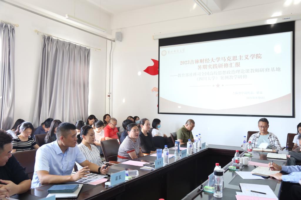 学校副校长王菁华结合教师汇报和迎评促建作了工作交流。她充分肯定了马克思主义学院此次有组织的教师实践研修活动取得的成果,从感同身受和回归本职两个方面与全体教师进行了交流。谈到感同身受,她指出,身受才能感同,学院这次暑期研修实践活动让理论与实践的结合更加紧密,进一步促进了思政课教学建设,也为人才培养模式改革提供了有益的借鉴。谈到回归本职,她指出,每一位教师都能坚持问题导向,结合研修活动中遇到的案例联系实际工作,再回归到思政课堂教学本职,提出了很多具有建设性的措施。同时,她希望每位教师进一步总结凝练实践研修内容,争取在某些方面形成具有一定推广意义的范例或成果,进一步推动学校思政课教学改革走深走实,产生积极的示范效果。