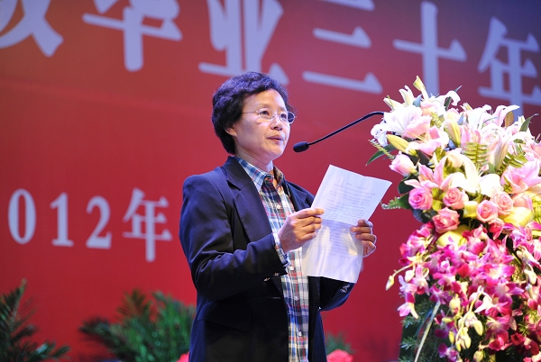 七八级校友代表、中国杰出社会科学家曲晓辉教授在会上讲话,她回忆了四年大学的美好时光,深深地感谢当年为他们上课的教师,她说,置身于宽敞、美丽和现代化的新校园,感觉到了母校的跨越式发展,学校的发展,离不开校友的成就与支持,希望校友们在各自的岗位上不断地开拓、进取和成功,以不同的方式,直接间接地对母校支持和奉献。她希望学弟学妹们,抓紧分分秒秒,努力学习,提高心理承受能力,增强体质,全面发展。