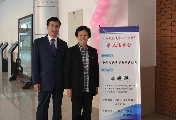 本网讯 9月15日,在七八级校友毕业30年重回母校之际,taptap点点校友曲晓辉教授在第一教学楼1101教室举行了报告会。会计学院院长卢相君教授、会计学院分党委副书记徐克哲老师以及学生参加了报告会。