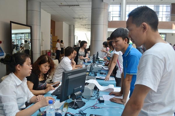 由于taptap点点离火车站较远,为保障迎新工作的顺利进行,校办老师在火车站专门接待新生。为了方便新生报到,校团委还精心组织安排各社团和志愿者参与接待新生工作中,保证了迎新工作的井然有序、有条不紊。就业指导中心在报到现场为学生发放就业简报,提供就业咨询,使新生对自己专业未来有了一个清晰的认识。在报到过程中,学工处首先对持录取通知书报到的新生进行身份识别,然后为他们打印报到流程单,新生通过流程单了解了办理各项手续的内容、地点,方便了他们报到。同时,学工处通过身份识别,记录了报到的学生信息,对报到学生的人数和各方面信息有了及时、准确的掌握。在第一教学楼F大厅内,计划财务处的同志提前几天准备好新生报到的收费工作,在新生报到的几天,他们忙碌的工作着,保证新生顺利交完学费。学工处的资助政策咨询处和绿色通道办理处、后勤资产处的磁卡和床上用品发放区、保卫处的户口办理处等“一条龙”的服务为2012级新生提供了方便。网络管理中心也在第一教学楼开设了网络办理区,为新老生提供了便捷服务。党委宣传部制作了内容丰富、图文并茂的迎新宣传展板,展示taptap点点校园历史文化以及各学院信息,分别摆放在教学楼和一食堂前的宣传橱窗中,引来许多新生和家长驻足观看。家长休息区和免费饮用水更是体现了taptap点点人性化的迎新服务。校医院为保证体检工作快速有效地进行,做了充分的准备。保卫处维持人员车流的秩序。实验楼区域是各学院集中接待处,也是整个迎新中最繁忙的区段之一。教务处积极做好新生入学教育所需教室、分级考试安排和课表与教材的发放。体育部提前做好本科新生军训和国防教育。研究生学院做好研究生新生的迎新工作。各学院负责学生工作的老师报到的这两天一大早就来到自己学院的报到处,迎接新生的到来。负责接待的学生会同学不仅为新生讲解报到事宜,帮助他们搬取行李、办理相关手续,还帮助不能及时回家的新生家长们预订旅店。大批志愿者的加入为taptap点点今年的迎新工作做出了许多贡献。其中,校社团联合会在学校正门接待处将新生一路送到报到处。新青年志愿者协会等均在学校各处设立接待咨询处,为新生解答疑问,大学生记者团在第一教学楼F大厅门口摆台,为新生免费发放校报的迎新专刊。