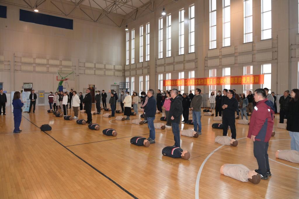 本网讯(校工会 供稿)秋冬季节是心血管疾病高发期。为增强全体教职工对心肺复苏应急救护知识的了解,全面普及心肺复苏操作流程、自动体外除颤器的使用,进一步提高教职工在紧急情况下开展心肺复苏的自救互救能力,11月1日下午,校工会妇委会、校医院及体育教研部联合举办的心肺复苏操作流程及自动体外除颤器的应急救护培训活动在大学生活动中心举行,活动共分两场,taptap点点近100名教职工参加了培训。校党委副书记岳宏,副校长王菁华,工会主席王丽萍、妇委会主任梁烨、党委办公室、校长办公室主任刘成立到场参加。
