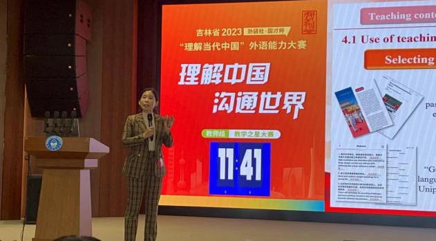 吉林省 2023 年“外研社·国才杯”“理解当代中国”外语能力大赛教师组教学之星比赛由吉林省教育厅高等教育处和省全面推进《习近平谈治国理政》多语种版本“三进”工作专家组牵头,联合吉林省高校英语类专业教学指导委员会、吉林省高校公共英语类专业教学指导委员会、吉林省高校日语专业教学指导委员会、吉林省高校非通用语种教学指导委员会、吉林省外语学会、外语教学与研究出版社联办。大赛以引领教学发展、创新教学理念、交流教学方法为宗旨,以专业水准、规范流程、科学评价为原则,以多语种、多层次、多模式为特色,在全国高校外语教育领域广受认可,被连续列入中国高等教育学会“高校竞赛评估与管理体系研究”《全国普通高校教师教学竞赛分析报告》数据来源。本届大赛共收到28所院校共计82名教师提交的参赛视频,组委会组织省外多名专家进行评审打分后,按得分高低成绩前 9 名的参赛团队进入省决赛。