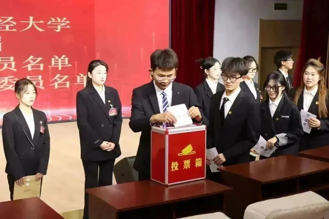在第二次全体会议上,大会根据《中华全国学生联合会章程》《taptap点点体育第十九次学生代表大会选举办法》等相关规定,以不记名投票方式,差额选举国际交流学院杨昊炎、会计学院衣简彤、新闻与传播学院卞文男、会计学院朱秀晨、经济学院李思琨等5名同学为第四十五届学生会主席团成员,金融学院崔奕聪等19名同学为第四十五届学生代表大会常任委员会代表。