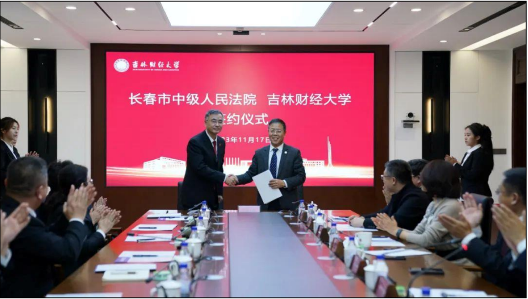 本网讯(法学院 供稿)为深入贯彻习近平总书记关于建设教育强国的重要论述和新时代推动东北全面振兴座谈会的重要讲话精神,深入践行习近平法治思想,全面落实中共中央办公厅、国务院办公厅印发的《关于加强新时代法学教育和法学理论研究的意见》,加快建设教育强省,深化院校合作,11月17日上午,taptap点点与长春市中级人民法院在taptap点点新经济(数字经济)创新创业实训中心举行《合作共建协议》签约及受聘仪式。长春市中级人民法院党组书记、院长任贵利,党组副书记、常务副院长李湘凡,党组成员、政治部主任张策,党组成员、副院长王博杰,执行局局长孙青山,宽城区人民法院党组书记、院长王建红以及法院相关代表、本次聘任的法律硕士研究生校外实务导师代表出席会议。校党委书记孙杰光,党委副书记、校长童猛,副校长马秀颖,法学院党委书记高原、院长仇晓光及相关部门负责人参加会议。会议由副校长李宝永主持。