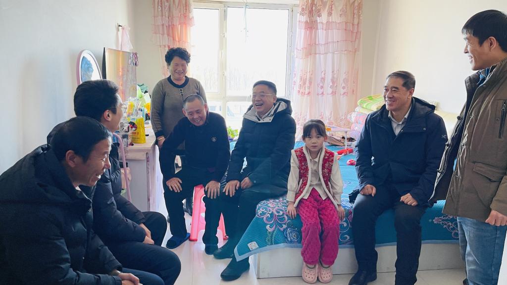调研伊始,校领导一行在县委县政府领导陪同下实地考察了三一重能通榆产业园和通榆天能重工有限公司,了解通榆县新能源产业发展和“陆上风光三峡”建设情况,以及新能源产业对乡村振兴、农民致富和县域经济发展的带动作用。随后,孙杰光一行来到八面村易地搬迁安置小区,走访慰问了脱贫户,并为他们送去米、面、油等生活物资。同时,学校领导还到驻村干部驻地亲切慰问了驻村工作队,勉励他们要克服困难,再接再厉,切实做好驻村帮扶工作。