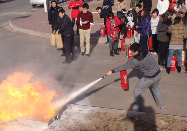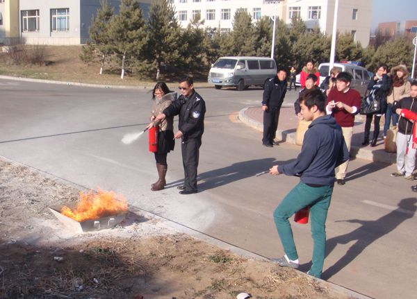 本次演练以楼内某房间突发火灾为假设,紧急组织人员疏散。为凸显火灾的突发性和实战效果,本次演练未进行事先明确通知。12时50分,楼内火警警报的拉响,全体外教、留学生及楼内研究生用毛巾轻捂口鼻,躬腰、俯首、低行,并选择最近的通道有秩序地撤出。5分钟后,全体人员安全疏散并清点人数。疏散演习结束后,在外事公寓南侧空地,保卫处工作人员讲解并演示了利用干粉灭灭火器扑救初起火灾的方法,之后外教、留学生及公寓管理人员进行了实际操作。演练取得了预期效果。