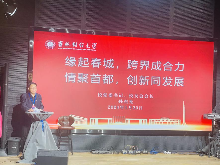 校党委书记孙杰光代表学校在年会上致辞,他对北京校友会年会的成功举办表示热烈的祝贺,向所有在北京工作、学习的校友致以美好的祝福!他简要回顾了北京校友会近年来在终身名誉会长陈耀先主席的关怀和指导下,在陈宁、孙九龙两届会长带领下,在服务校友成长、助力母校发展、深化内外联络、加强校友会建设等方面取得的显著成绩。他向与会校友和嘉宾介绍了taptap点点传承红色基因、为党为国培育财经英才的78年使命担当和光辉历程;介绍了自2021年学校第二次党代会后,母校全面开启“建设国内一流财经大学”新征程“三步走”战略构想以来,在党建和思政工作、博士点申报、人才培养、学科建设、科学研究、招生就业等方面取得的佳绩;介绍了从吉林省委省政府推出的“常态化举办校友人才促进振兴发展活动、加强各类校友人才工作载体建设、建立校友人才‘资智回吉’长效机制、着力夯实校友人才工作基础”四大方面,十二条具体举措。他向所有的吉财校友们发出真诚邀请:请校友们多回长春感受吉林的热情和母校的温暖,更希望校友能带回资源建设吉林、建设母校。他强调,再过两年,将迎来建校 80周年这个重大历史时刻,全体吉财校友将共同见证母校历史上的重要里程碑,他借北京校友年会这个平台向海内外校友发出邀约,集众智、聚合力办好80周年大庆,展现母校辉煌与吉财力量。