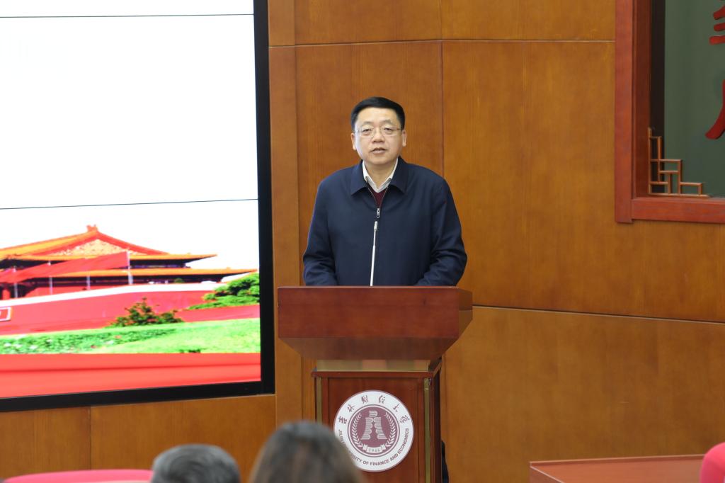 本网讯(党委宣传部 供稿)3月20日,学校召开党委理论学习中心组2024年第3次专题学习(扩大)会议,同时举办“吉林财经大讲堂”第34讲,深入学习贯彻习近平总书记在全国两会期间发表的重要讲话精神,深刻学习领会和贯彻落实两会精神及部署要求。会议由省政府参事李寅权作“全国两会精神解读”专题辅导报告。学校领导班子成员,全体中层正职干部,各学院(部)院长(主任)、科研副院长(副主任),各科研平台和两刊负责人,国家“两金”及教育部项目申报人,各级智库项目负责人等参加会议。会议由校党委书记孙杰光主持。