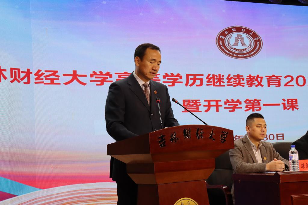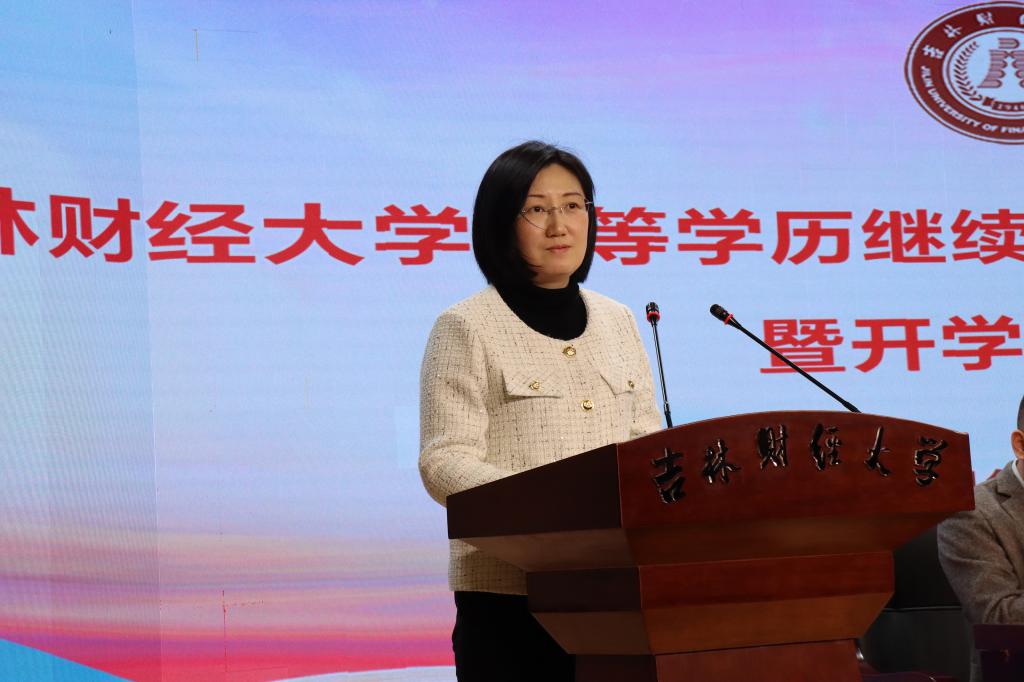 徐克哲在致辞中强调,四十年高等学历继续教育办学征程,吉财继教挺立时代潮头,始终坚守“为党和国家、为区域发展培育财经英才”的初心和使命,把教育教学质量作为继续教育办学的生命线;进入新时代,吉财继教坚持“服务全民终身学习需要、促进经济社会发展和人的全面发展”的主旋律,开启学校继续教育改革发展新征程。他寄语新同学,一要将“明德崇实”的校训精神内化于心,将其融入财经报国之行。二要夯实根基,厚积薄发,向着自己的目标不断充实自我。三要虚怀若谷,海纳百川,构建起更加宽宏大量的人生观念。希望新同学们坚守“尚学致用、择善鼎新”的学校精神,学有所成、不负韶华。