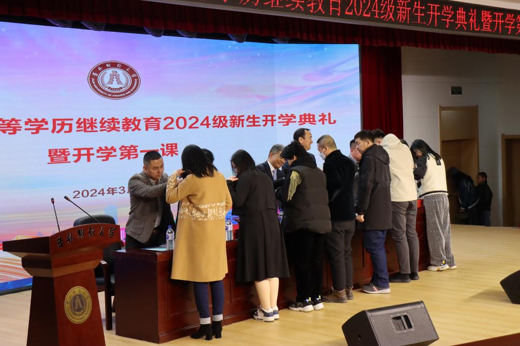 开学典礼上举行了校徽佩戴仪式。李宝永、徐克哲等分别为新生代表佩戴校徽,象征从此拥有了“吉财人”这个新身份,寄托着师长对新生们的期望。希望他们牢记taptap点点体育校训,在吉财校园开启新的征程,用青春书写财经报国的精彩华章。