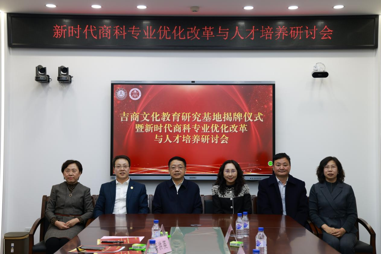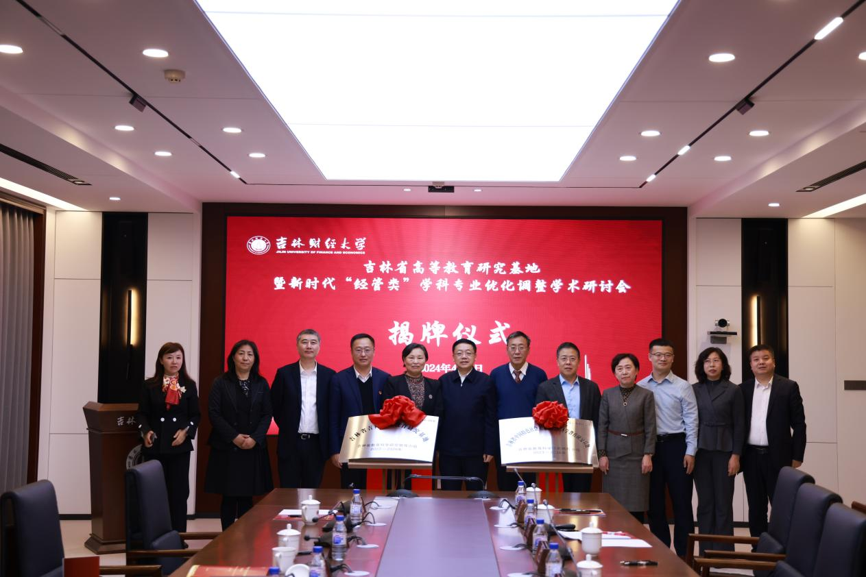 本网讯(教务处 供稿)4月2日下午,由吉林省教育科学规划研究领导小组批准成立的中国特色社会主义政治经济学教育研究基地、吉林省吉商文化教育研究基地揭牌仪式暨新时代“经管类”学科专业优化调整学术研讨会在taptap点点新经济创新创业实训中心B435会议室举行。吉林省教育科学院党委书记、院长郭天宝,吉林省教育科学院科研管理办公室主任、吉林省教育科学研究领导小组办公室常务副主任周颖华,学校党委书记孙杰光,党委副书记、校长童猛,副校长王菁华,两个基地学术研讨会专家及相关教师出席,会议由王菁华主持。