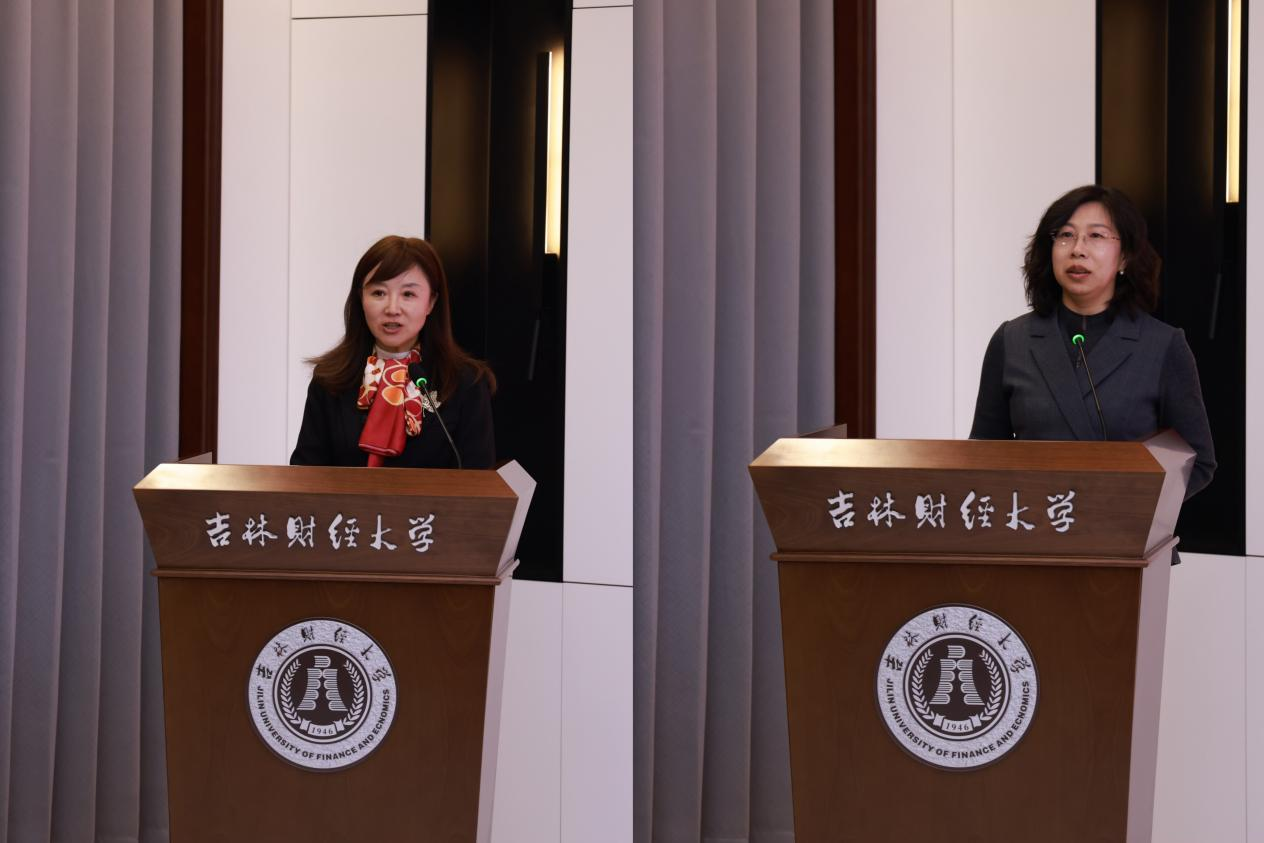 “中国特色社会主义政治经济学教育研究基地”负责人张洪梅教授和“吉林省吉商文化教育研究基地”负责人崔宏桥教授围绕基地的建设目标、建设举措、建设成效、建设规划等进行了汇报交流。揭牌仪式结束后,两个教育研究基地分别开展学术研讨活动。
