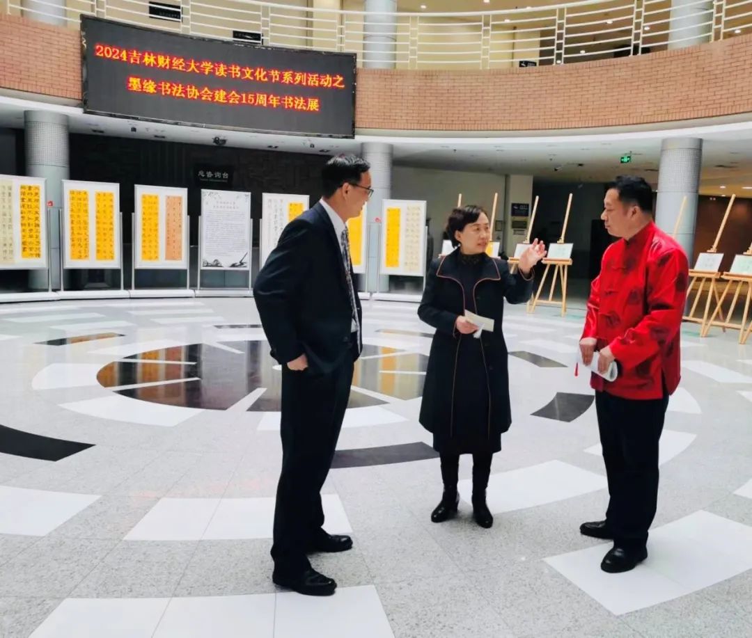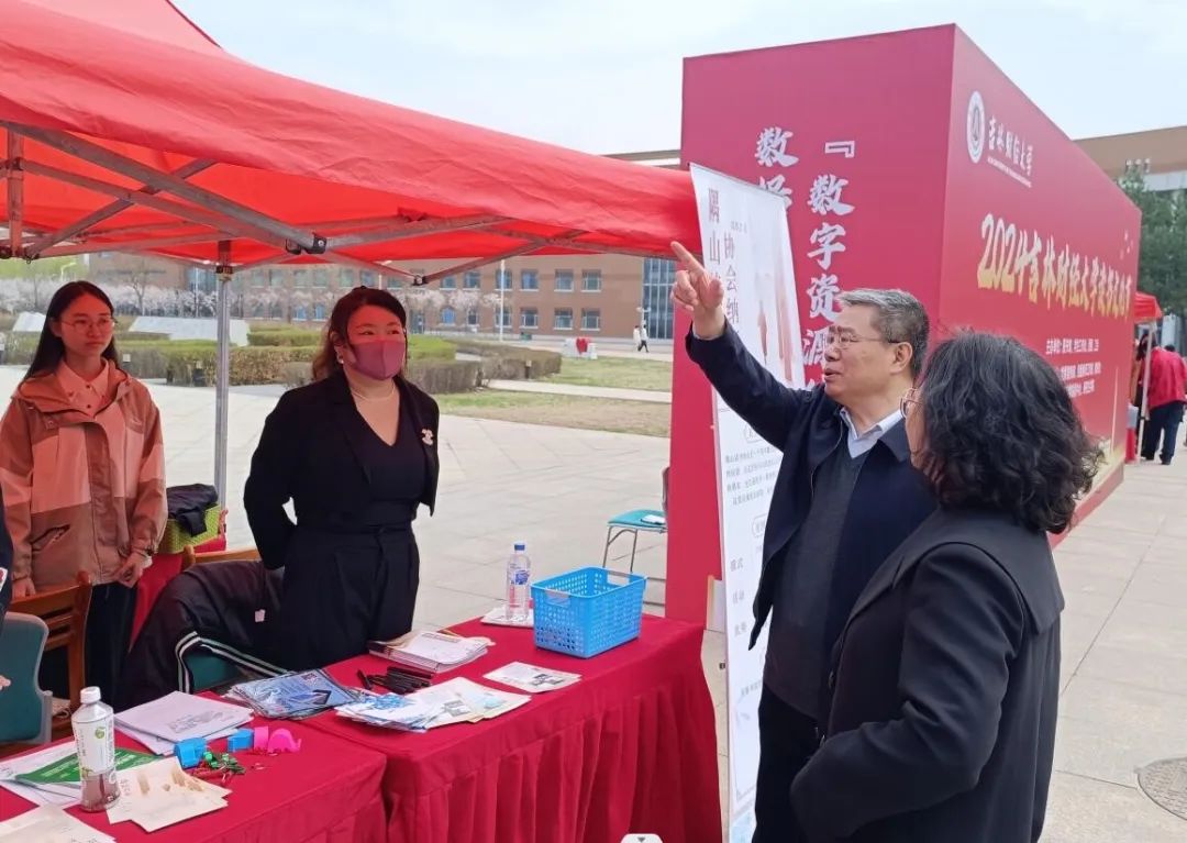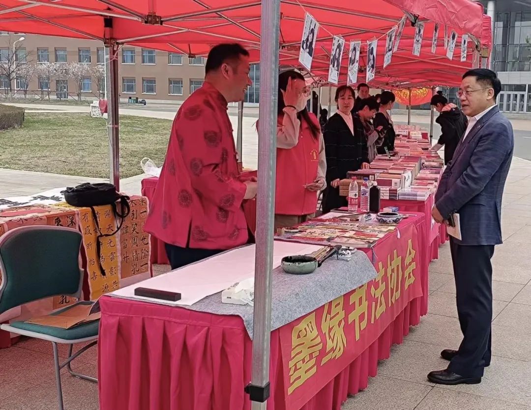 上午9时许,喜庆的红色成为学校中心广场的主色调,在这个读书人的节日里,4·23世界读书日书展、数字资源宣传推介、隅山读书协会和墨缘书法协会宣传纳新、“读书诗词”主题书法作品展等活动在学校中心广场和图书馆大厅精心举办。校党委书记孙杰光、校党委副书记校长童猛、校党委副书记刘鹤、副校长王菁华等领导先后来到中心广场参与活动并与大家亲切交流。活动现场气氛活跃,人潮涌动,内容精彩纷呈,营造出良好的读书节日氛围。