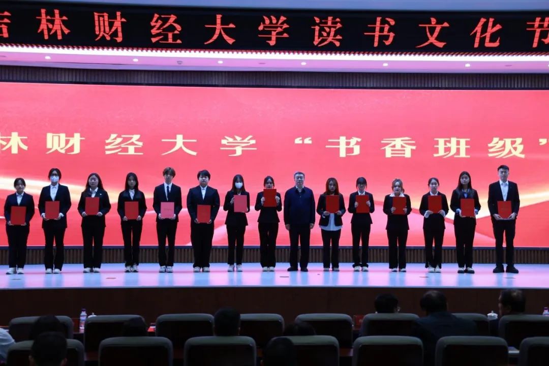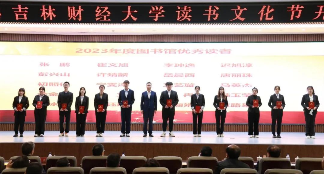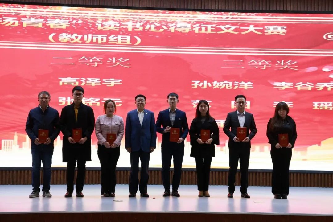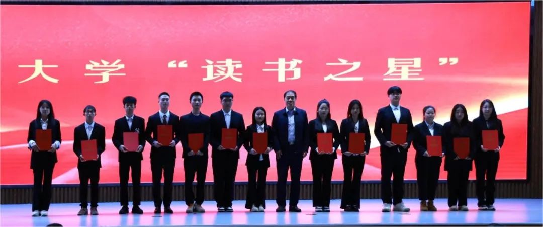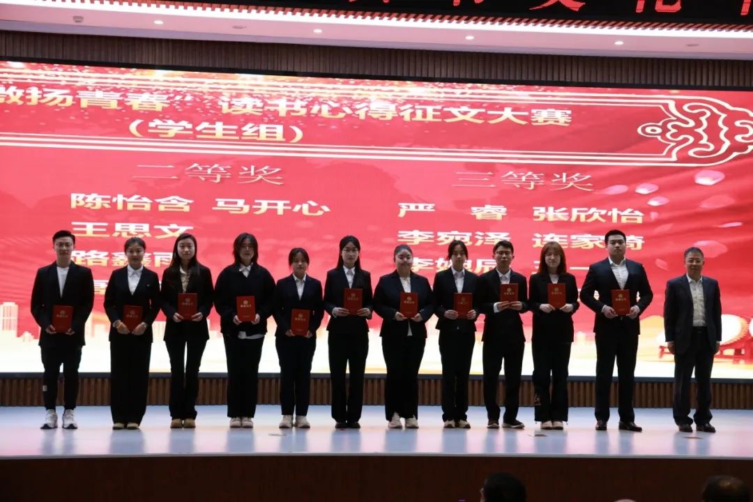 校领导分别为“书香激扬青春”读书心得征文大赛、“读书之星”单项奖学金、“书香班级”、2023年度图书馆优秀读者获奖者颁奖。