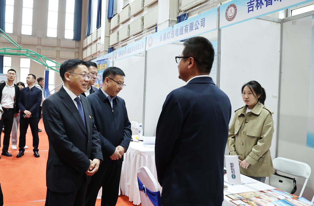 参会领导在校党委书记孙杰光,党委副书记、校长童猛,党委副书记刘鹤的陪同下来到招聘会现场,与用人单位、毕业生等进行亲切交流,详细询问用人单位对学校人才培养工作的意见和建议,并现场调研了毕业生对就业工作的满意度。
