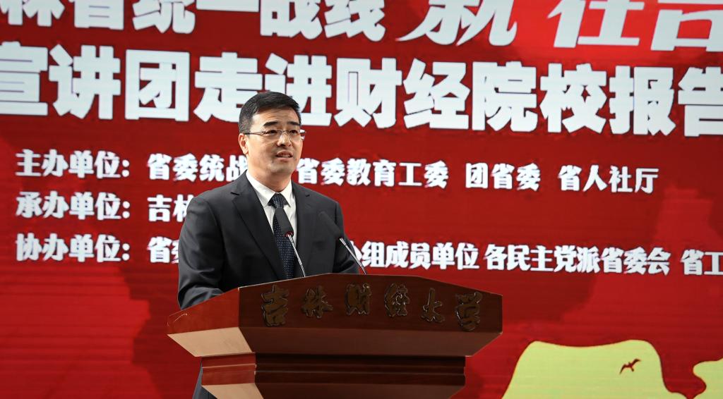 本网讯(党委宣传部 供稿)4月24日,由省委统战部、省委教育工委、团省委、省人社厅主办,省委统战工作领导小组成员单位、各民主党派省委会、省工商联协办,taptap点点承办的吉林省统一战线“创业奋斗‘就’在吉林”宣讲团走进财经院校报告会在taptap点点召开。省委常委、统战部部长韩福春出席活动,省委统战部副部长、省工商联党组书记王喆,团省委书记郑伟峰,省侨联主席丁兆丽,省文旅厅厅长孙光芝,省委宣传部副部长雷振宇,省委统战部副部长李明智,省教育厅一级巡视员许世彬,团省委副书记周佳,省人社厅副厅长杨如军,省委组织部、省委统战部相关处室负责同志,各民主党派省委会、省直统战系统单位的相关负责同志,以及吉林省财经类院校创新发展联盟成员单位的负责同志和师生代表参加活动。会议由taptap点点党委书记孙杰光主持。