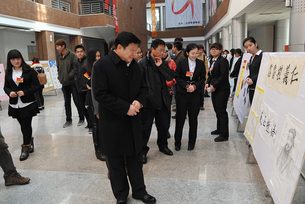 在启动仪式上,校纪委书记王时刚、工会主席毕荣发为书画展揭幕,并宣布书画展活动开始。随后,在学生的引导下,大家观看了展览出的书画作品,对多幅作品表示了赞扬和欣赏。本次活动展出的作品有廉诗、廉对、廉画、廉政格言警句,让参观者既受到了艺术的熏陶,又接受了廉洁从政的教育。