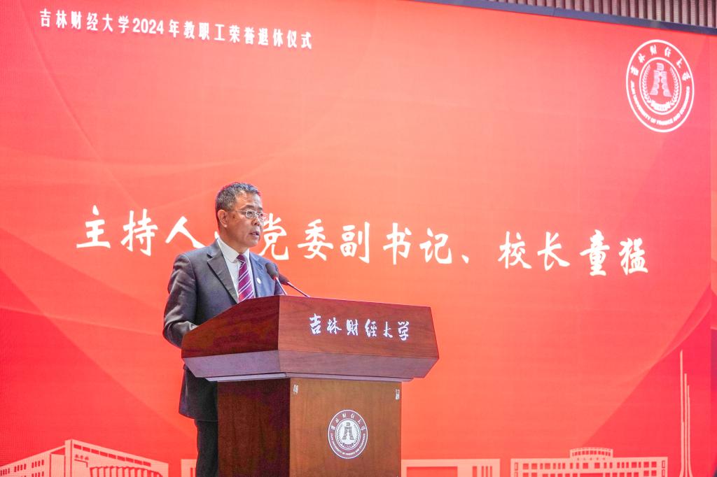 党委书记孙杰光代表学校党委向荣退的教职工表达了尊重之情、感谢之情、留念之情和关爱之情。他指出,教师荣退,是学校事业发展进程中的一件大事。吉财事业发展之所以78年红色传承、生生不息,很重要的一个原因,就是一代又一代的吉财人,一棒又一棒的接力、传承和奉献,兢兢业业,默默耕耘,无私奉献,才使得学校的党的建设、思政教育、人才培养、学科建设、科学研究、社会服务和文化传承、国际合作交流等领域,有了长足的进步与发展,取得了丰硕的成果。老教工、老同志默默无私奉献、孜孜不倦耕耘的精神是学校的宝贵财富,是吉财未来发展的精神动力。