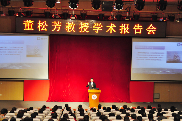 下午一点半学术报告在逸夫图书馆报告厅正式开始。金融学院院长刘吉舫教授为董松芳总经理颁发了校兼职教授聘书。随后董松芳教授围绕着保险业的起源、中国保险业的发展现状和中国保险业发展前瞻,以“成长中的中国保险业”为题作了学术报告。