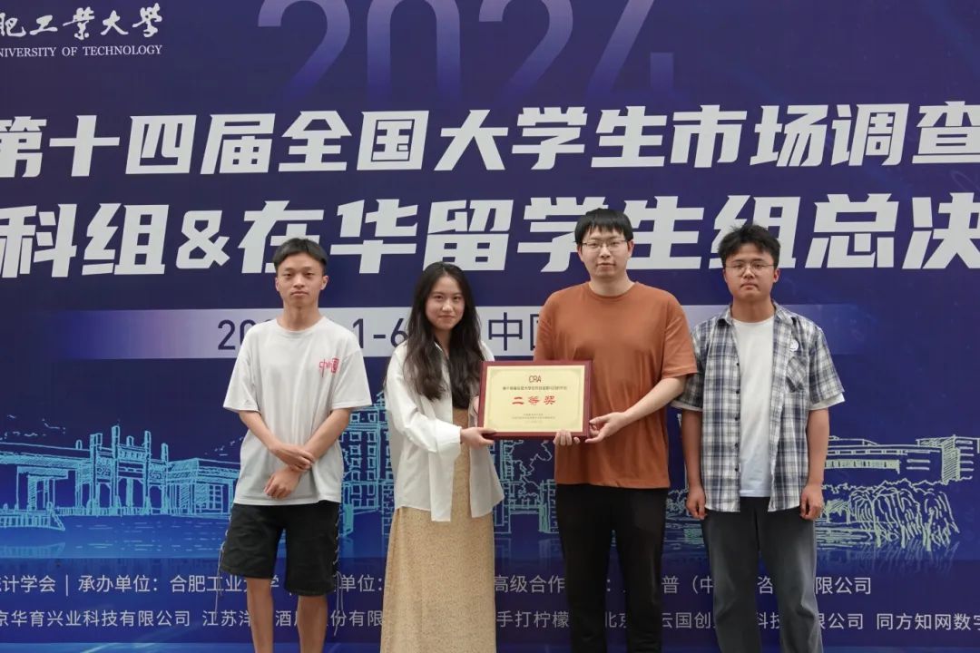 本网讯(统计学院 供稿)2024年6月2日,“正大杯”第十四届全国大学生市场调查与分析大赛 (本科组&在华留学生组)全国总决赛在合肥工业大学顺利落下帷幕,taptap点点参赛队伍荣获国家一等奖2项、二等奖2项,并被全国组委会授予最佳院校组织奖。
