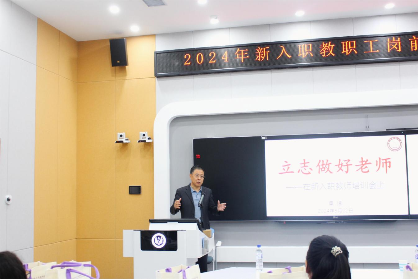 校长童猛在专题报告中以“立志做好老师”为题,强调每一位老师都是学生成长道路上的引路人,教师的言传身教、点滴教诲,都将深深影响学生的成长轨迹和人生方向。他指出,立志做好老师,要有高尚的道德情操和人格魅力,要具备深厚的专业素养和教育理念。同时也要有创新精神和探索勇气。