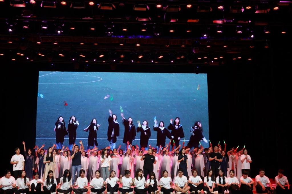 第四篇章以欢送毕业生为主题。毕业班辅导员赵凡淞以一首寄情述理、饱含祝福的rap组织召开了2024届毕业生的最后一次年级大会;师生合唱歌曲《有没有那么一首歌会让你想起我》在熟悉的旋律和温馨的大学时光中诉说着彼此不舍的离别之情;由学院团学干部共同演绎的舞蹈《星途》,舞动着对即将毕业的学长学姐们前途似锦的殷殷祝福,更蕴含着会守护好建设好工商管理学院这个永恒的家的承诺。最后,文艺思政课在现场大合唱《璀璨冒险人》中落下了帷幕。