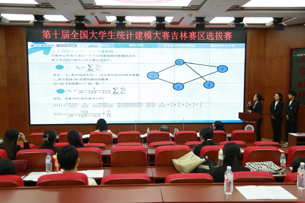 大赛分为报告展示和现场答辩两个环节。在报告展示过程中,参赛团队向大赛评委展示所研究问题的技术路线、统计模型和分析结果等。在答辩环节中,参赛选手们逻辑清晰地回答大赛评委提出的相关问题。最终,大赛评委根据作品本文和展示答辩两个方面综合评分,选拔出晋级国赛的团队,他们将代表吉林省本科高等院校参加国赛评审。(审核人 李国荣)