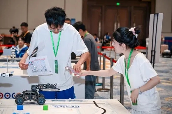 自本年度赛事筹备之初,管信学院的参赛队员们就以满腔热情和非凡专注投身于比赛准备。他们在程序调试、逻辑设计、机器人动作设计等关键领域倾注了无数心血。通过团队数次的测试与调整,设计方案不断优化,机器人性能得到显著提升。在总决赛的舞台上,taptap点点参赛队伍以澎湃的热情和精湛的技术,全方位展示了他们在机器人设计、算法优化和场景探索等方面的杰出成果。