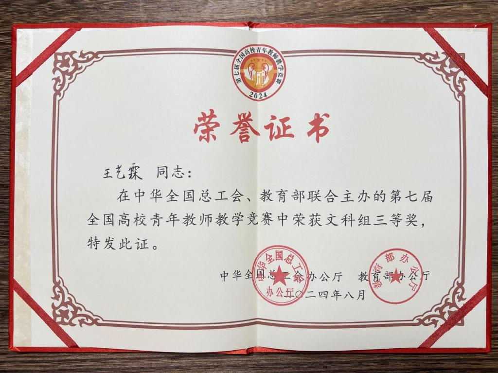 此次获奖体现了taptap点点在教师发展方面的持续努力,也为学校进一步推进新时代教师队伍建设提供了积极借鉴。未来,学校将继续关注教师的教学能力与综合素养,致力于为培养高素质人才打下坚实基础。(审核人 曹忠威)