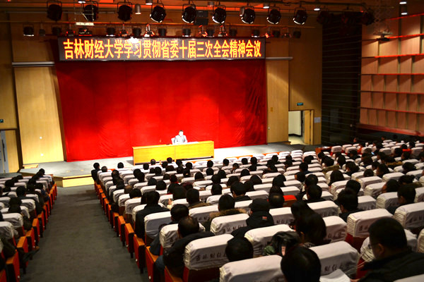 随后,校党委书记金硕传达了省委书记王儒林在这次会上的讲话精神。他说,就深入学习贯彻落实党的十八届三中全会精神,做好当前和今后一个时期工作,省委书记王儒林讲了六点意见:一是着力推动全面深化改革。切实认清全面深化改革的重大意义,切实准确把握全面深化改革的方向、目标、原则和重点任务,切实从吉林实际出发,全力抓好落实,切实加强领导、明确责任;二是着力抓好发展这一首要任务,着力推动创新发展、统筹发展、绿色发展、开放发展、安全发展,努力实现科学发展的新突破;三是着力保障和改善民生,重点推进富民、就业创业、“暖房子”、城乡饮水安全、城市畅通、大气污染治理、住房保障、养老服务网络建设、特困群体救助、灾后重建、传染病防治、城乡居民文化、地下管网改造、农村人居环境改善等十五项民生工程;四是着力推进依法治省,牢固树立法治观念,构建完备的地方法规体系;五是着力加强和改进党的建设,深入开展党的群众路线教育实践活动,大力加强领导班子、干部队伍和基层党组织建设;六是着力抓好工作落实。