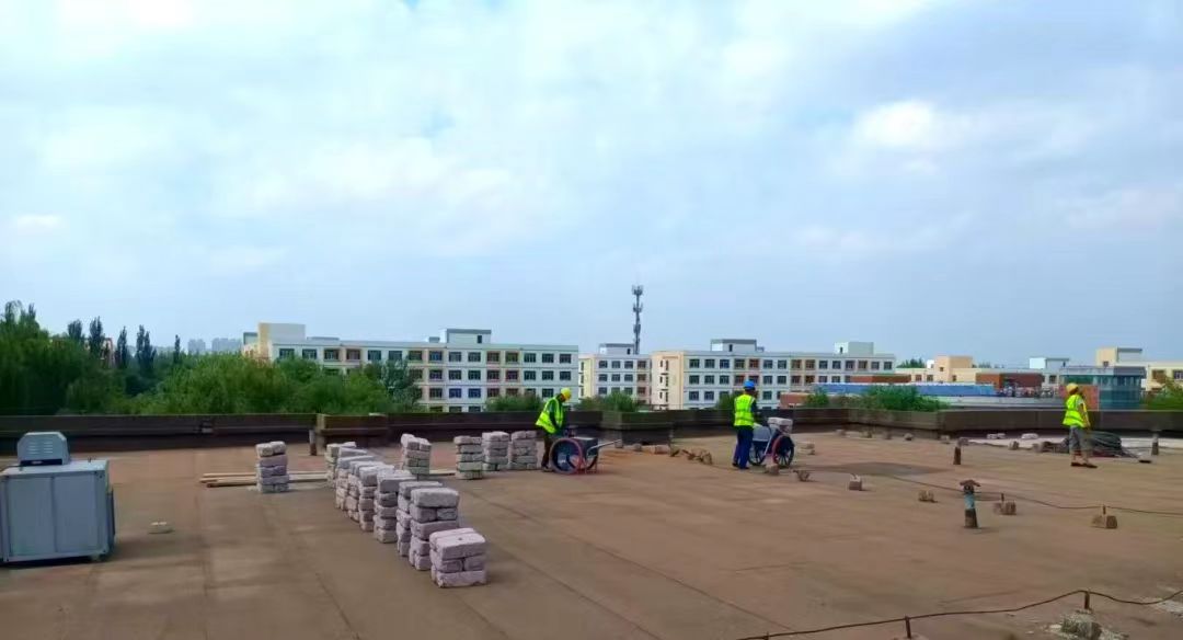 一、二食堂外墙保温和屋顶防水改造工程进行中
