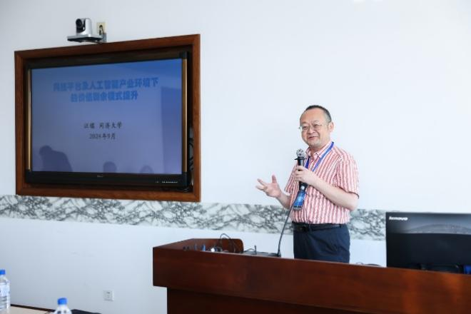 中国人工智能学会理事兼自然计算及数字智能城市专业委员会秘书长、同济大学汪镭教授做了题为“网络平台及人工智能产业环境下的价值剩余模式提升”的专题报告。东北师范大学经济与管理学院吕康银院长做了题为“数据要素市场化驱动企业新质生产力研究”的报告。吉林省中小企业服务机构联合会常务副会长兼秘书长姜佐博士做了题为“量体裁衣小处着手精准发力——中小企业数字化转型的挑战与策略”的报告。广州拓维数字科技集团林庆龙总经理做了题为“探索招商引资‘新模式’,激活民营企业发展‘新引擎’”的专题报告。