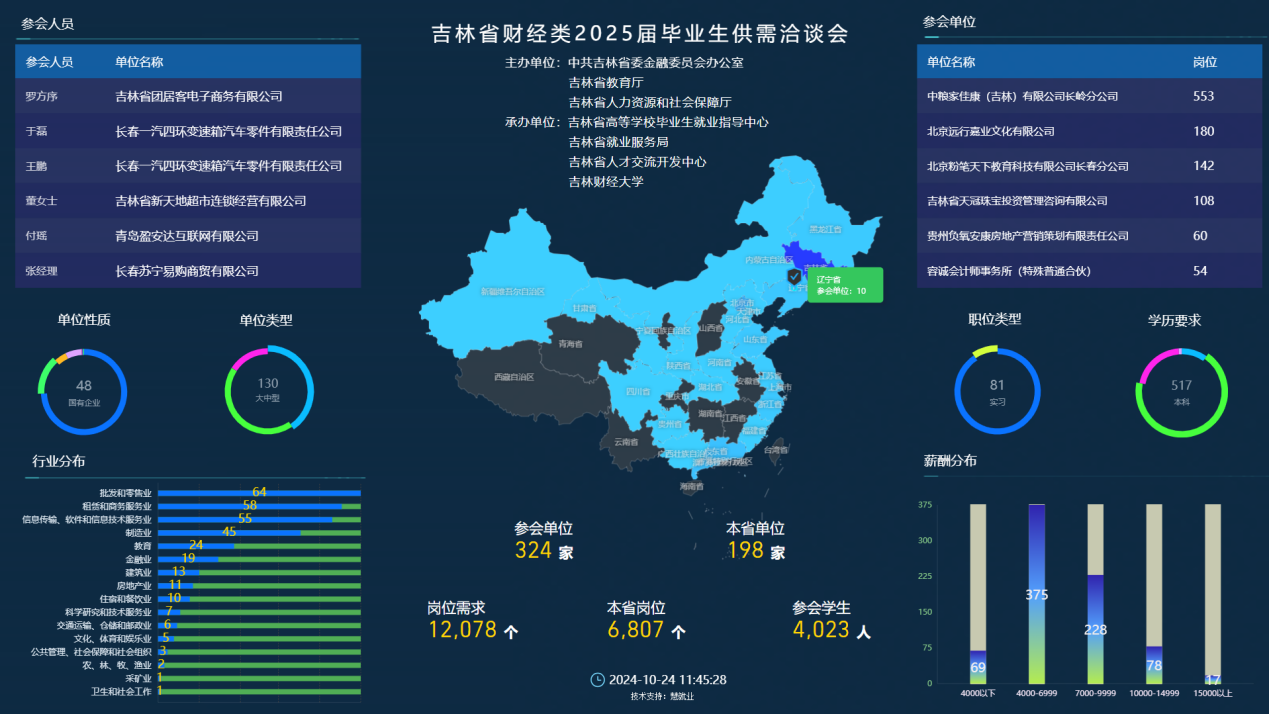 本次招聘会由中共吉林省委金融委员会办公室、吉林省教育厅、吉林省人力资源和社会保障厅主办,吉林省高等学校毕业生就业指导中心、吉林省就业服务局、吉林省人才交流开发中心、taptap点点体育承办。吉林省就业服务局局长呼应、中国吉林高新技术人才市场指导委员会办公室(省人才交流开发中心)主任王传禛、中共吉林省委金融委员会办公室指导督查处处长杨晓帅、吉林省教育厅学生处处长宁宝忠、吉林省高等学校毕业生就业指导中心主任唐洪丰、吉林省就业服务局职业介绍处处长刘亚丽、中共吉林省委金融委员会办公室指导督查处三级主任科员王瑞伟到现场指导,taptap点点党委书记张炳辉,党委副书记、校长童猛,纪委书记、监察专员丁庆东以及学校就业职能部门和院系相关负责人陪同参加。参会领导深入招聘会现场与用人单位、毕业生等进行深入交流,详细询问用人单位对学校人才培养工作的意见和建议,并现场调研了毕业生对就业工作的满意度。