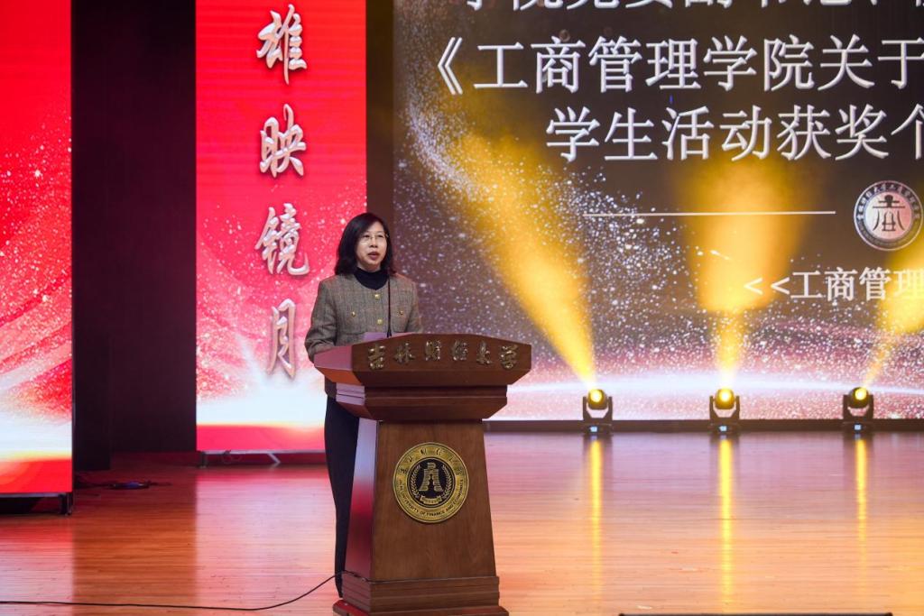 工商管理学院党委书记梁晓秋和党委副书记、院长崔宏桥分别宣读了《关于表彰工商管理学院教学成效先进工作者、实践实训优秀指导教师、科研先进工作者、研究生教育先进工作者的决定》《关于表彰工商管理学院学生活动获奖个人的决定》,学校领导和学院领导班子成员为获奖师生代表进行了颁奖。活动由学院团委书记许家铭主持。