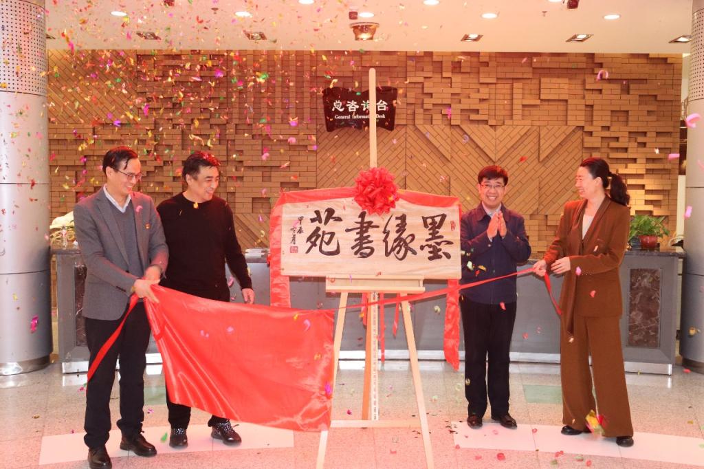 校团委书记孙之光、实验实训中心主任孙钦波、图书馆馆长朱雪刚、校纪委审理室主任宋阳共同为“墨缘书苑”揭牌。