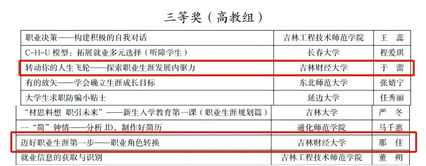 学校教师在吉林省第十届职业发展与就业指导课程教学大赛暨微课程大赛中荣获三等奖