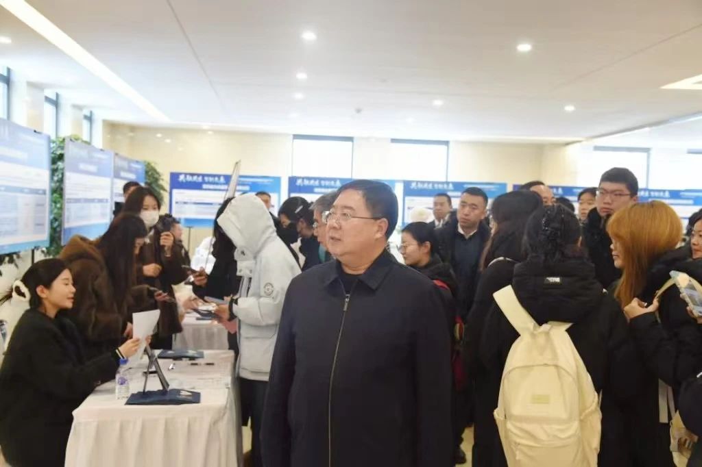 张炳辉深入招聘会现场,详细了解企业人才需求,与用人单位、毕业生亲切交流,询问用人单位对学校人才培养工作的意见和建议。