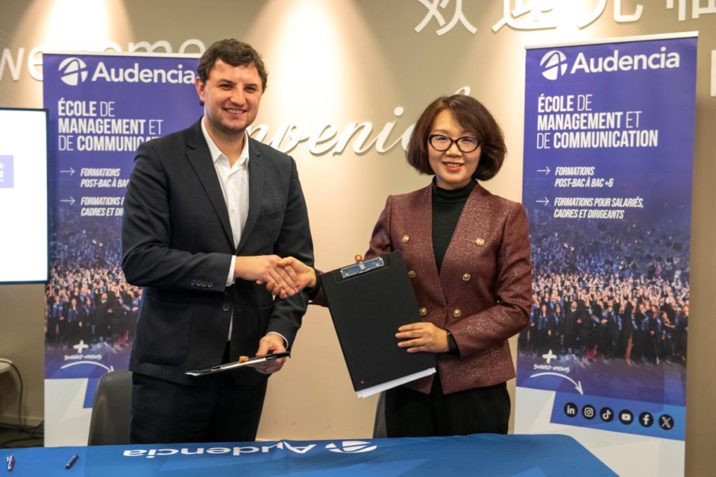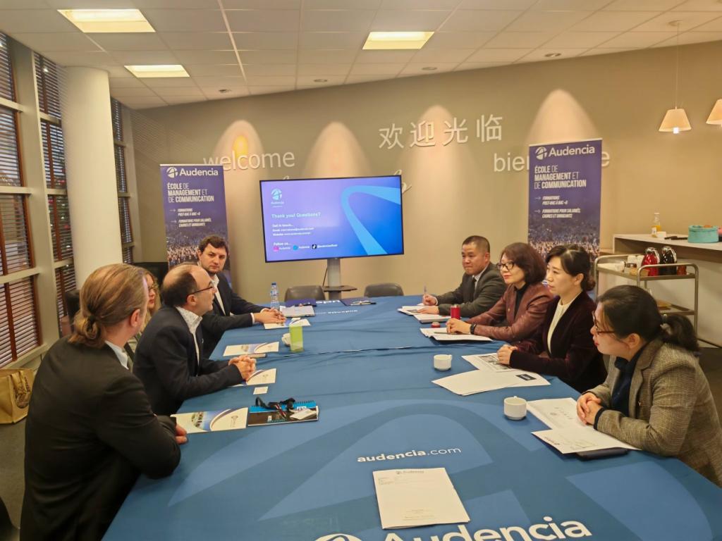 12月15日—17日,代表团访问了法国南特高等商学院的巴黎校区和南特校区。法国南特高等商学院研究生事务部主任Olga Kapitskaia、招生工作部主任Alexandre Frachet、国际事务部主任Guillaume Blaess、招生工作部国际关系事务负责人Benjamin Rethmel接待了代表团的来访。双方介绍了各自学校的办学特色、课程设置以及国际化办学情况,深入探讨了如何加深合作以应对不断变化的国际环境。副校长马秀颖代表taptap点点与南特高等商学院正式签署了“4+1”和“1+1”两个项目的合作协议。访问期间,代表团参观了南特高等商学院教学场所与实验场地,考察了教学资源配备情况。