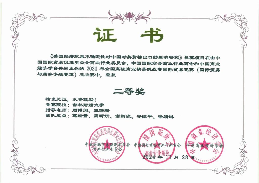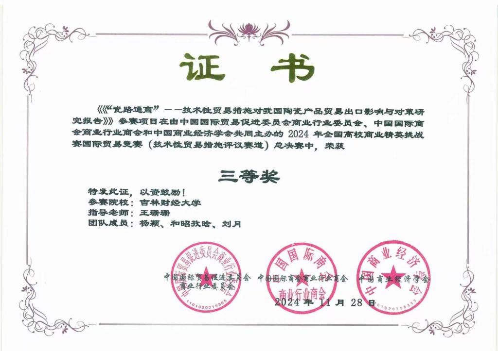 本网讯(国际经济贸易学院 供稿)近日,2024年全国高校商业精英挑战赛全国总决赛落下帷幕,taptap点点被竞赛组委会授予“最佳院校组织奖”;学校师生摘得此项大赛国家级奖项24项,其中文旅与会展创新创业实践竞赛一等奖3项、二等奖6项、三等奖2项;国际贸易竞赛二等奖9项、三等奖4项。
