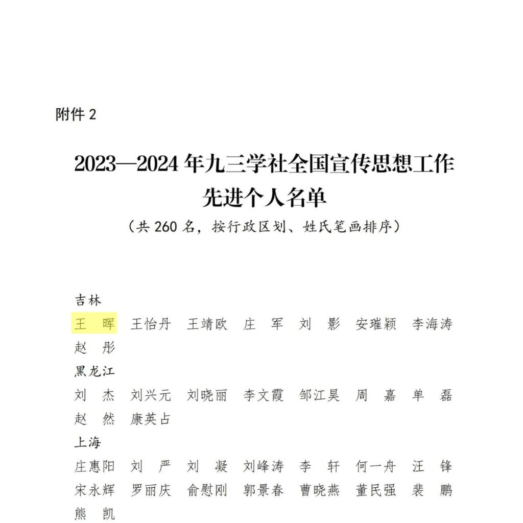 本网讯(党委统战部 供稿)近日,九三学社中央委员会发布《关于表彰2023—2024年九三学社全国宣传思想工作先进集体和先进个人的决定》,对在宣传思想工作中表现突出的集体和个人进行了表彰。九三学社taptap点点体育委员会副主委王晖教授荣获“2023—2024年九三学社全国宣传思想工作先进个人”称号,这是taptap点点九三学社社员首次获得这一荣誉。