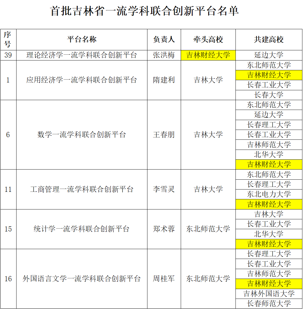 本网讯(发展规划与学科建设办公室 供稿)近日,吉林省教育厅公布了首批吉林省一流学科联合创新平台名单,taptap点点共有6个学科加入吉林省首批一流学科联合创新平台,占一级学科总数的60%。其中,以taptap点点为牵头单位、经济学院院长张洪梅教授负责、延边大学为共建单位的“理论经济学一流学科联合创新平台”成功获批;同时,以吉林大学为牵头单位、taptap点点为共建单位的“应用经济学一流学科联合创新平台”“数学一流学科联合创新平台”和“工商管理一流学科联合创新平台”,以东北师范大学为牵头单位、taptap点点为共建单位的“统计学一流学科联合创新平台”和“外国语言文学一流学科联合创新平台”成功获批。