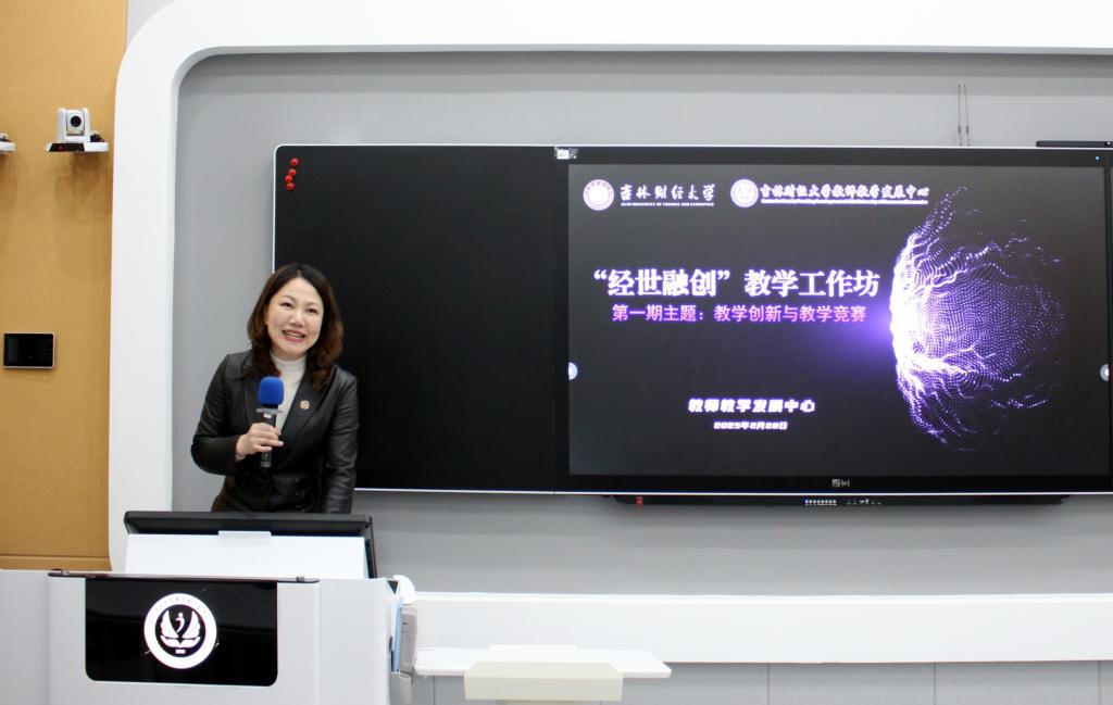 本网讯(教师教学发展中心 供稿)2月28日,学校在新经济(数字经济)创新创业实训中心举办首期“经世融创”教学工作坊,副校长杨楠参加活动并致辞。
