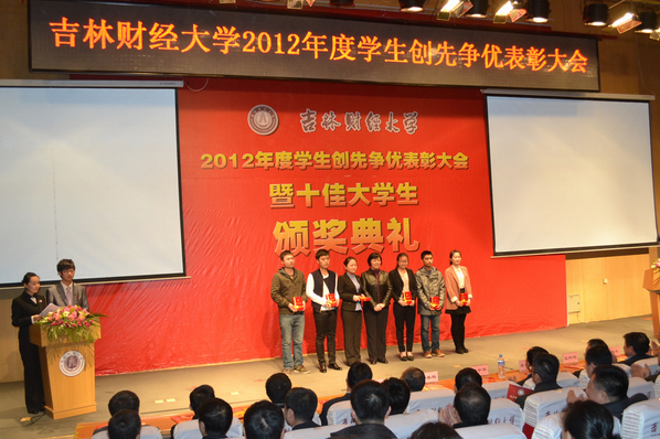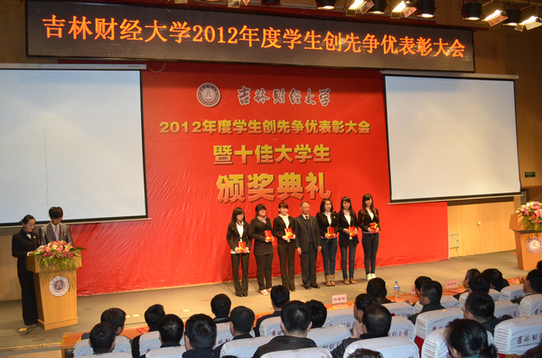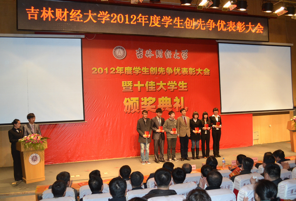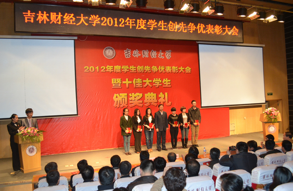 随后,学生工作处副处长李栋栋宣读了表彰决定,2012年高校文明杯竞赛活动中获得长春市十佳大学生、文明大学生、长春市十佳班级、文明班级、文明寝室等荣誉的团体和个人,荣获国家奖学金、国家励志奖学金、吉林省政府奖学金、校长奖学金的同学,taptap点点三好学生、优秀学生干部、先进班级、文明寝室等集体和个人受到了表彰。校长宋冬林、校党委副书记兼副校长郝中华、校纪委书记王时刚、副校长杨春梅、副校长张越杰、原副校长张喜山和相关部门负责人为获奖集体和个人颁发了证书。