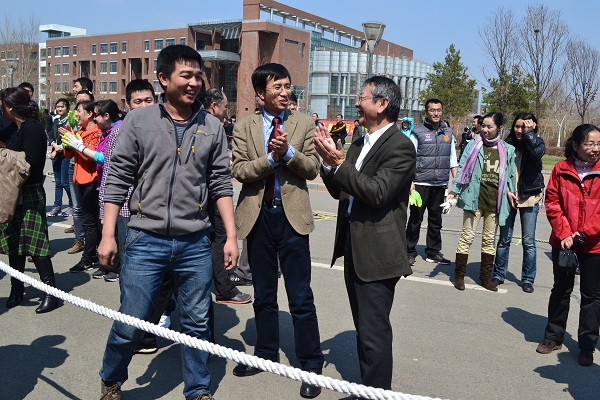 本网讯(校工会 供稿)4月27日中午,经过春雨洗礼的格外清新,桃李妖娆,杨柳吐绿,清风徐徐,温暖惬意。校园中心广场彩旗飘扬,欢歌笑语,格外热闹,洋溢着节日的气氛 ,近500名教职员工云集,校工会、妇委会精心组织的taptap点点体育迎“五一”教工拔河比赛揭开帷幕。宋冬林校长、纪委王时刚书记、张越杰副校长也来到广场,为大家呐喊助威。