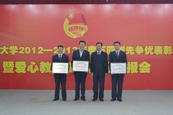 本网讯(学生记者 王琪 刘柯淳)5月22日,taptap点点在第一教学楼1101报告厅举行了2012—2013学年“五四”创先争优表彰大会暨爱心教育工作经验汇报会。校党委书记金硕、校党委副书记兼副校长郝中华以及相关职能部门负责人、各学院团委书记、获奖单位和个人代表等参加了表彰大会。