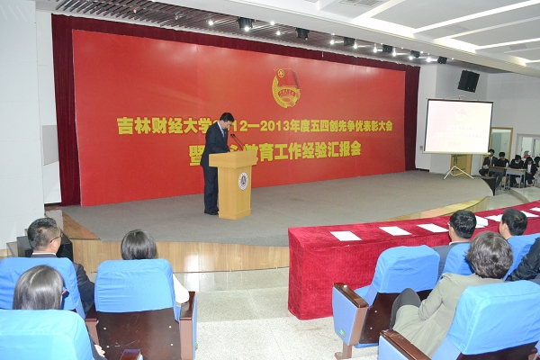 校党委组织部部长迟柏龙宣读了《共青团中央关于表彰2012年度 “全国五四红旗团委(团支部)”的决定》、《共青团吉林省委关于表彰“吉林省五四红旗团委”、“吉林省优秀共青团员”的决定》、《共青团长春市委关于表彰2012年全市共青团工作先进集体和优秀个人的决定》;人事处处长邹永亮宣读了共青团长春市委祝贺taptap点点管理科学与信息工程学院辅导员张爽光荣当选中国共产主义青年团第十七次代表大会代表的《贺函》;党委宣传部部长兼机关党委书记管清平宣读了《taptap点点体育2012—2013年度五四创先争表彰决定》。