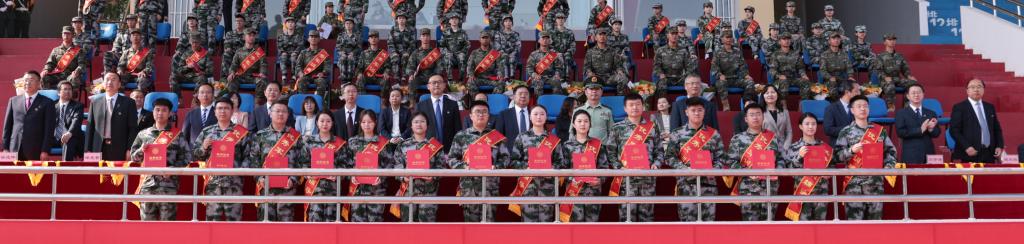学生工作处副处长徐瑞妍宣读表彰决定。学校领导、部队领导及各学院书记共同为受表彰的教官、辅导员以及学生代表颁发荣誉证书,并向优秀寝室授予锦旗。