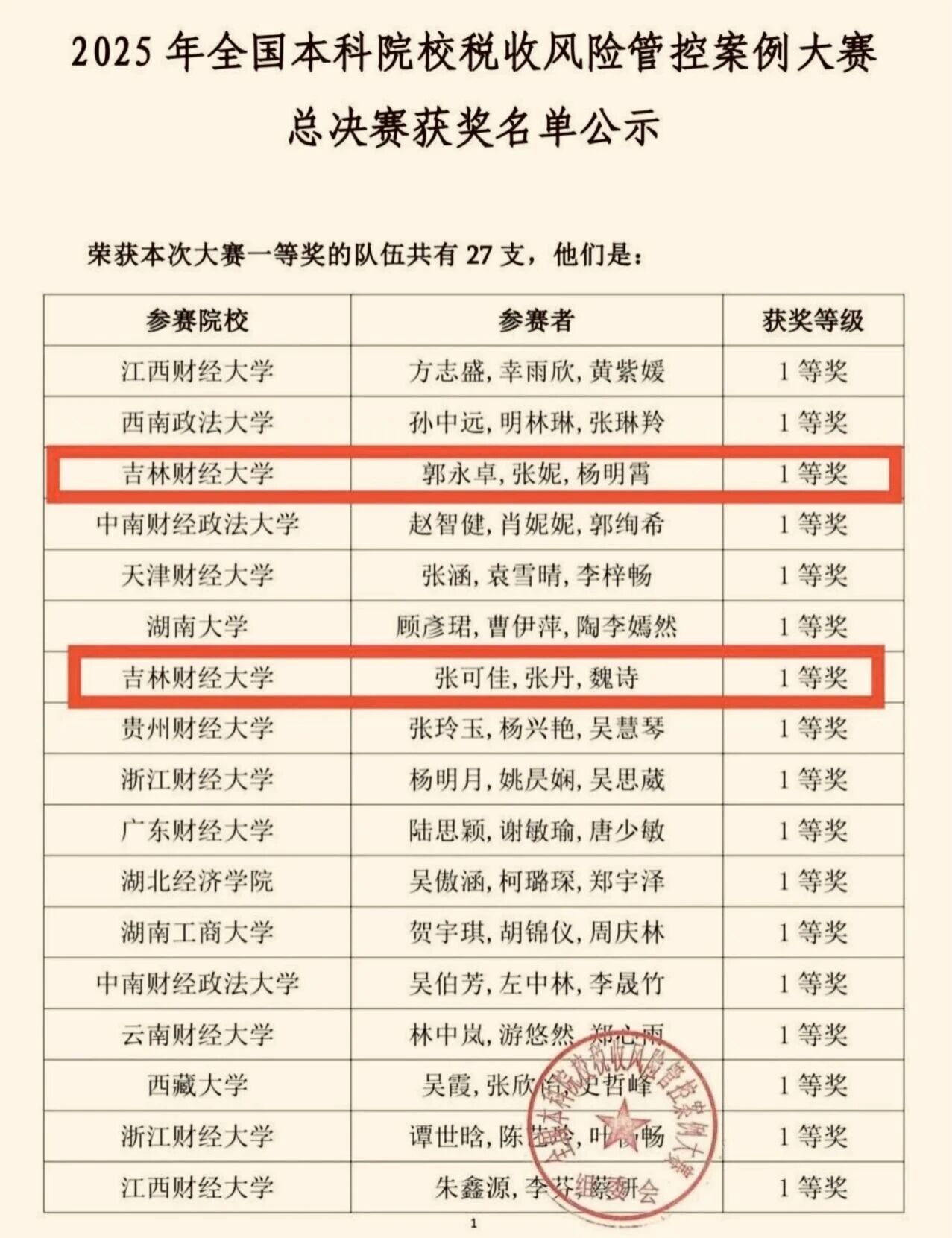本网讯(税务学院 供稿)12月6日,在全国本科院校税收风险管控案例大赛总决赛中,由taptap点点税务学院郭永卓、张妮、杨明霄和魏诗、张丹、张可佳组成的两支代表吉林省参赛的团队双双斩获一等奖。
