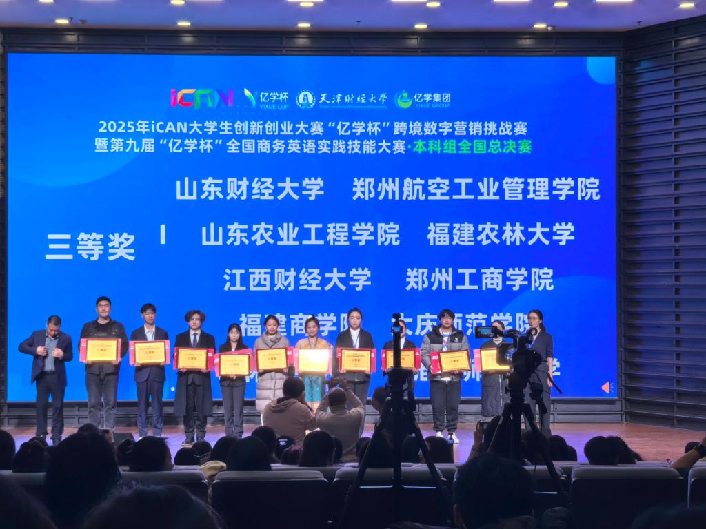 本次大赛由iCAN大学生创新创业大赛组委会、全国商务英语实践技能大赛组委会主办,天津财经大学承办,来自全国多所高校的300余名参赛学子同台竞技,以专业实力角逐荣誉,共话数字时代商务人才培养新路径。